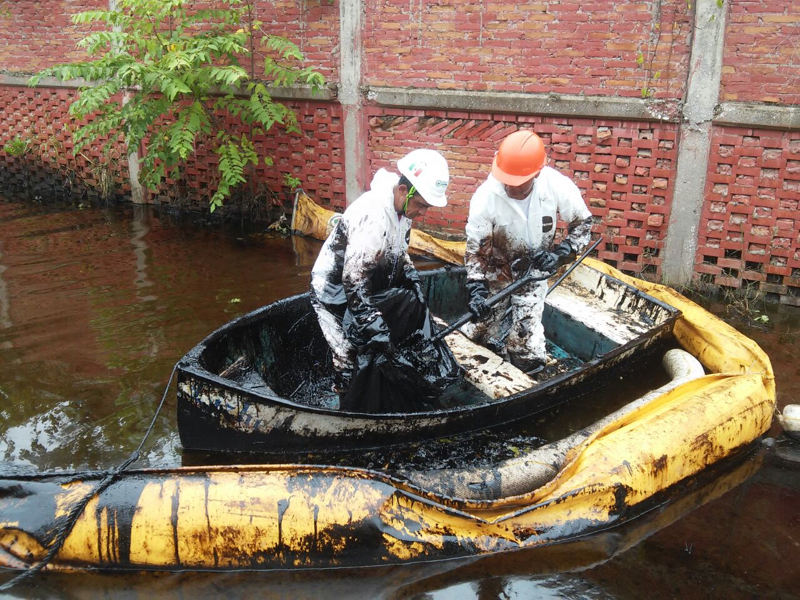 Response to spill emergency in a neighborhood named Colonia Hipodromo, at Cd. Madero, Tamaulipas.
